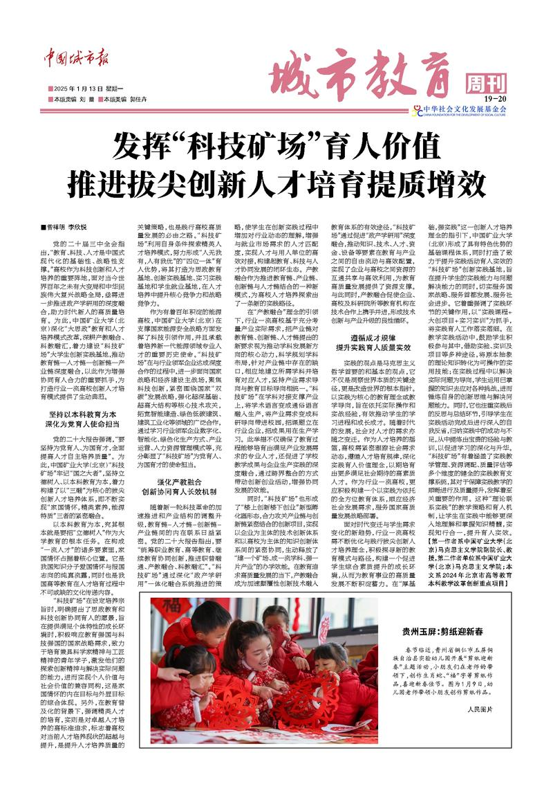 党的二十届三中全会指出,“教育、科技、人才是中国式现代化的基础性、战略性支撑。”高校作为科技创新和人才培养的重要阵地,面对当今世界百年之未有大变局和中华民族伟大复兴战略全局,亟需进一步推进政产学研用的深度融合,助力时代新人的高质量培育。为此,中国矿业大学(北京)深化“大思政”教育和人才培养模式改革,深耕产教融合、科教融汇,着力建设“科技矿场”大学生创新实践基地,推动教育链—人才链—创新链—产业链深度融合,以此作为增强协同育人合力的重要抓手,为打造行业一流高校创新人才培育模式提供了生动典范。