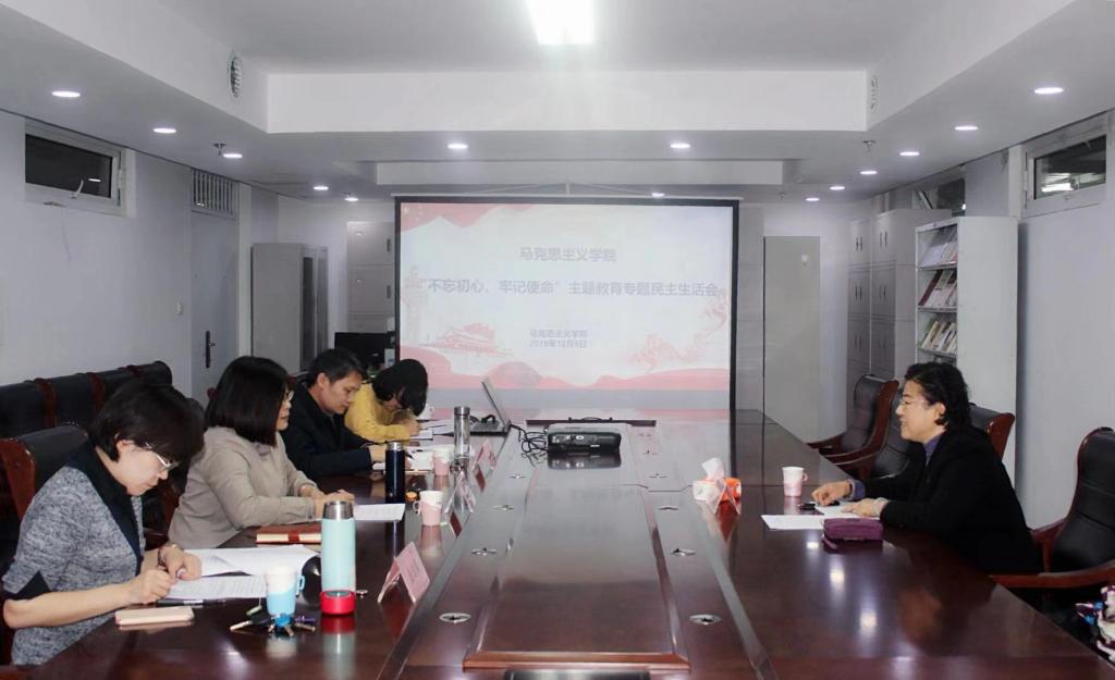 12月9日下午,马克思主义学院领导班子在逸夫楼1217召开“不忘初心、牢记使命”主题教育专题民主生活会,校党委副书记、纪委书记董晞出席会议。会议由学院党总支书记李建伟主持,院长李妍,副院长盖逸馨参加会议。