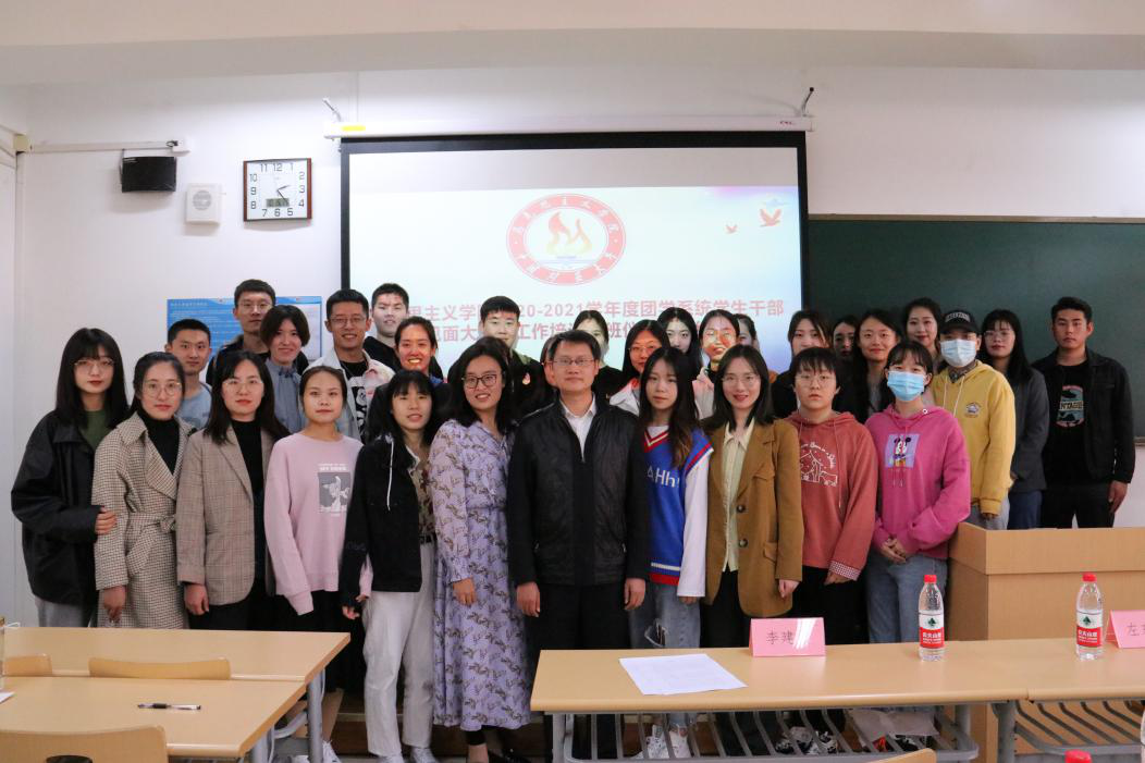 10月19日,马克思主义学院在沙河校区教一302召开了2020-2021学年度团学系统学生干部见面大会暨工作培训开班仪式。马克思主义学院党总支书记李建伟、辅导员左东方以及全体团学干部参加本次会议。会议由左东方老师主持。