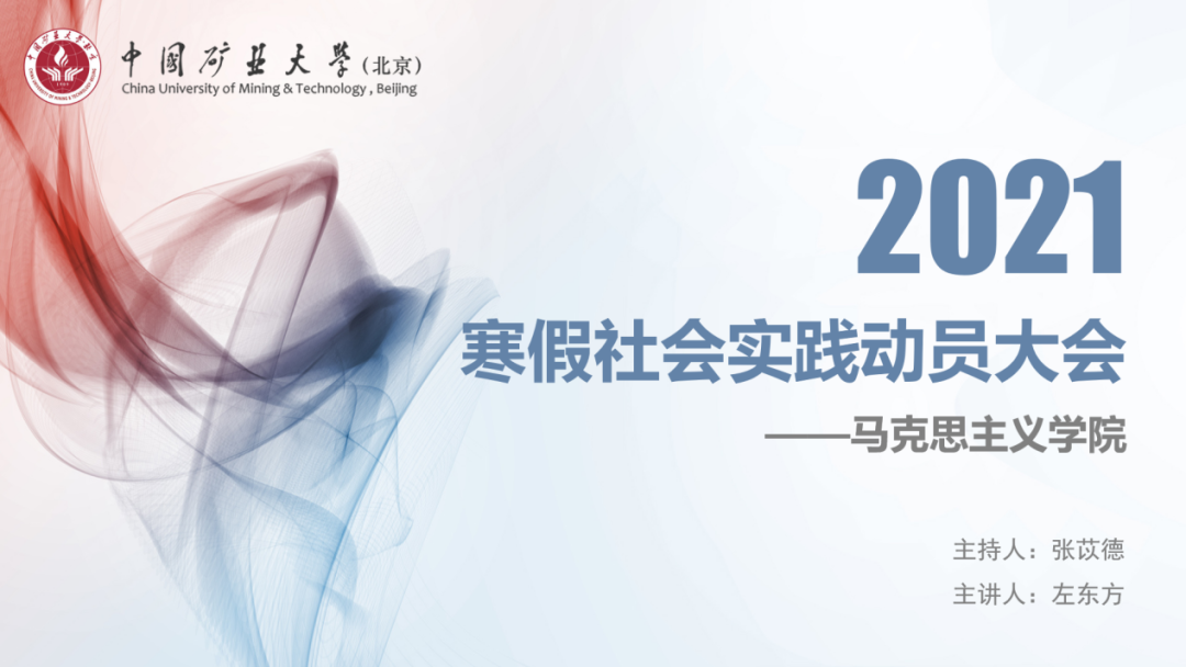 为促进学生了解国情、增长才干、奉献社会、锻炼能力,进一步推进寒假社会实践工作的开展。2020年12月31日上午10:00,马克思主义学院团委组织召开2021年寒假社会实践线上动员大会,邀请马克思主义学院分团委书记左东方主讲。大会由马克思主义学院分团委副书记张苡德主持。