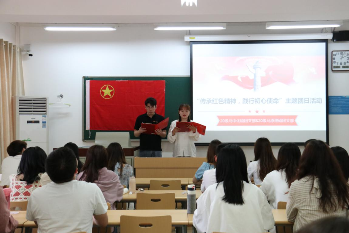 为庆祝中国共产党建党100周年,持续深化党史学习教育,进一步激励青年团员从党的百年伟大奋斗历程中汲取前进的智慧和力量,5月12日下午,我院2020级马原理硕士团支部和2020级马中化硕士团支部联合开展以“传承红色精神,践行初心使命”为主题的团日活动。团中央统战部青联界别工作处处长韩晓,团中央统战部青联界别工作处干部赵伶俐,校团委书记孙铭晗,校团委办公室主任郭涵、马克思主义学院团委书记左东方莅临会议指导。团支部全体成员参加本次团日活动。活动由两支部团支部书记李逸柔、高金生主持。