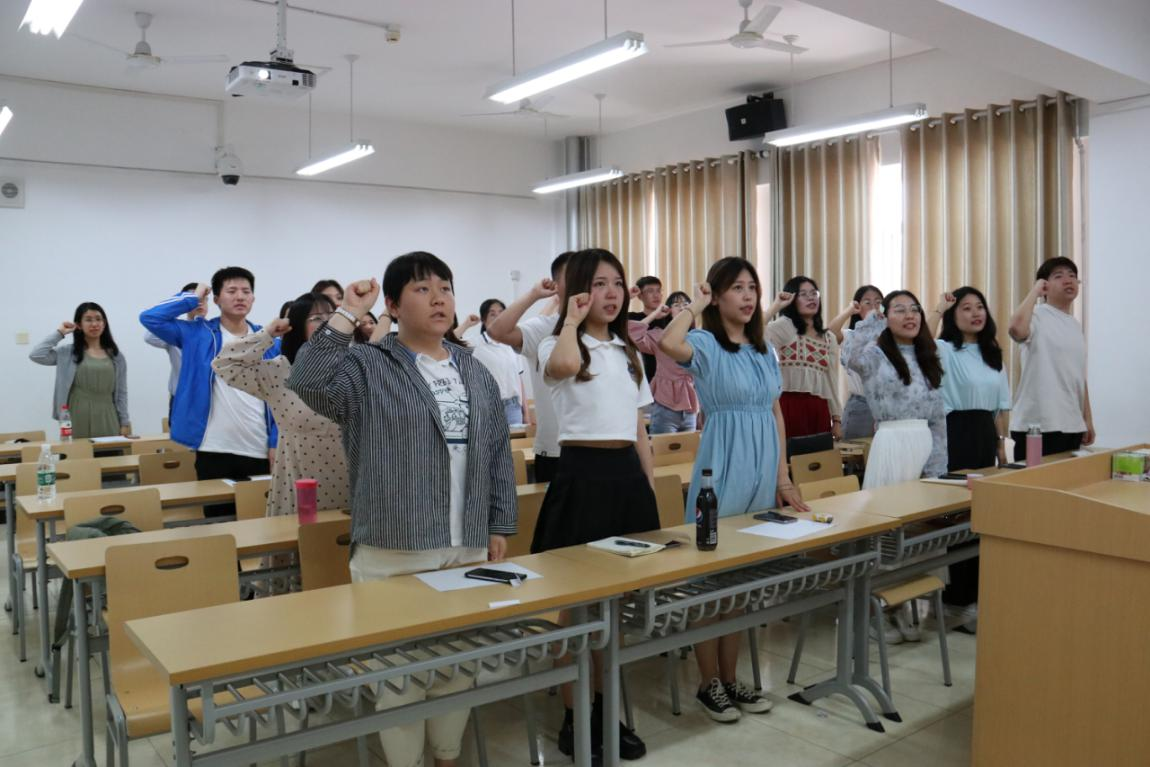 本次主题团日活动包括党史知识竞赛和重温入团宣誓词两项内容。在知识竞赛的环节,成员分为6个小组参与答题,大家认真思考,踊跃答题,现场氛围活跃热烈。答题结束后,各小组代表分享学习党史心得,并共同观看党史学习微视频《七届二中全会》,巩固学习党史知识成果。在重温入团誓词环节中。在场所有成员面向团旗,在领誓人李逸柔的带领下庄严宣誓,进一步坚定同学们的共产主义理想信念。