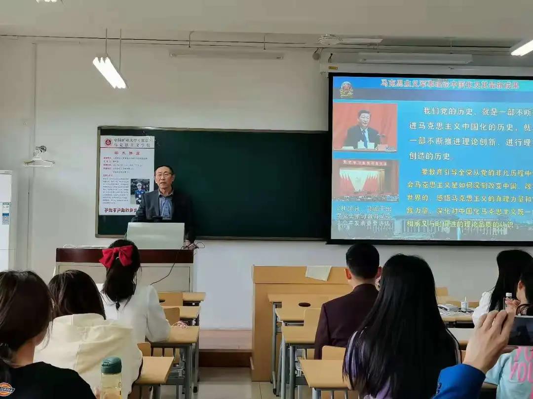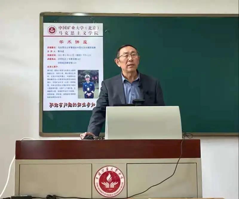 为深入推进党史学习教育,提升我院马克思主义理论学科建设和高层次人才培养水平,丰富学生理论视野,5月13日下午,我院特聘教授、国防大学原马克思主义教研部副主任、海军少将、博导黄书进在我校沙教2-403作《马克思主义军事理论中国化及其最新成果》的主题讲座。北京信息科技大学马克思主义学院、中国政法大学马克思主义学院、北京师范大学马克思主义学院等多所兄弟院校及我院共100余位师生代表参加了线下线上讲座与交流。