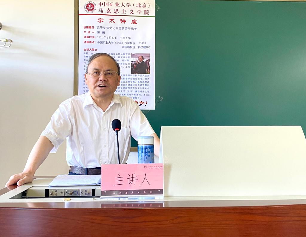 为丰富理论视野,增强文化自信,提升我院马克思主义理论学科建设和高层次人才培养水平,6月17日下午,我院兼职博导陈勇教授在沙河校区教2-403作了《关于坚持中国特色社会主义文化自信的若干思考》的主题讲座。北京信息科技大学马克思主义学院等兄弟院校及我校师生代表100余人参加了线上线下讲座与交流。