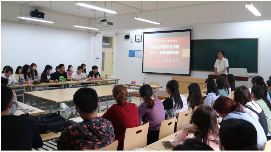 首先,曾庆桃老师认为习总书记“七一”重要讲话不仅是一篇理论学习重要文献和政治宣言,更是我们实现下一个百年奋斗目标的行动指南。其次,对习总书记“七一”讲话内容进行深度详细解读,尤其对伟大的建党精神的科学内涵做了全面的阐释。然后,从理论和实践两个层面向同学们提出如何学习贯彻好习近平总书记“七一”重要讲话。