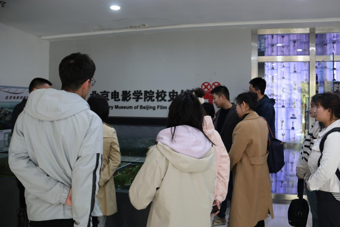 在北京电影学院思政部直属党支部书记庄瑞峰的陪同下,师生一起参观了北京电影学院校史馆。庄瑞峰介绍了北京电影学院的历史沿革、学科建设、人才培养、教学成绩等学校发展建设的各个方面,同时展示了许多珍贵的历史照片和文献资料。