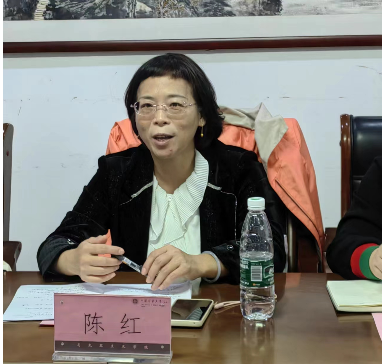 陈红详细介绍海师马院师资队伍建设、教学科研情况等工作。她表示希望通过此次交流学习,深入了解马院建设的特色工作经验,海师马院也将结合地域特色,持续加强学科建设,提高教学质量和科研水平。