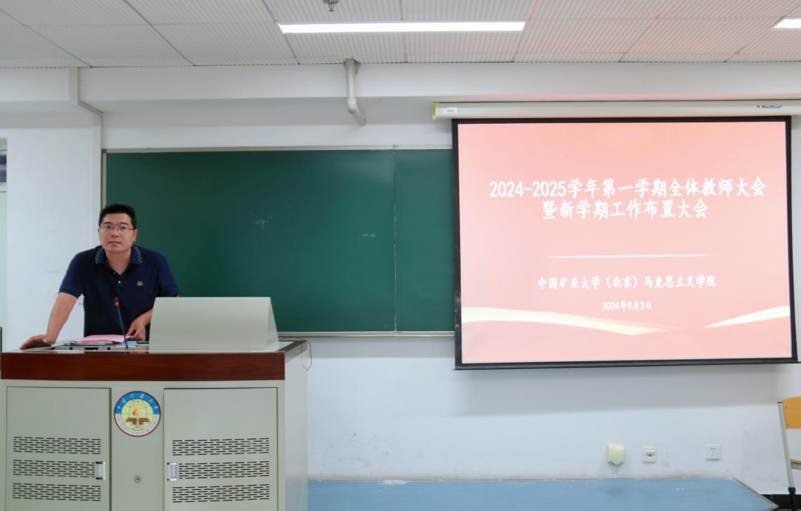 在第40个教师节到来之际,为深入学习贯彻落实党的二十届三中全会精神,学习贯彻《中共中央 国务院关于弘扬教育家精神 加强新时代高素质专业化教师队伍建设的意见》,2024年9月2日下午,马克思主义学院在逸夫楼1116室召开新学期全体教师大会,部署新学期工作。会议由马克思主义学院党委书记卢刚主持。