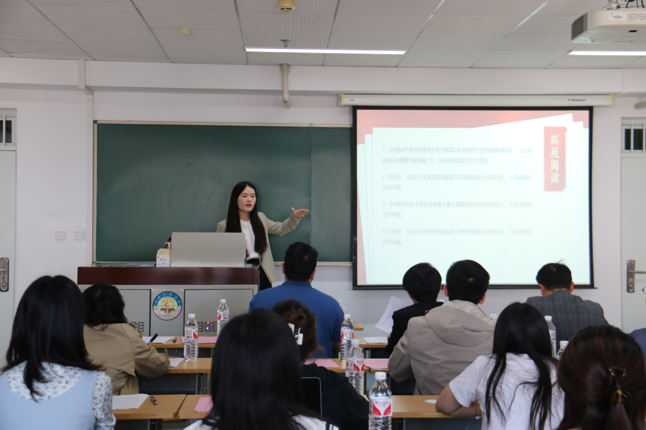 为深入学习贯彻党的二十届三中全会精神和全国教育大会精神,促进青年教师夯实教学基本功,提升教学能力与教学水平。2024年10月8日,马克思主义学院在逸夫楼1116教室举办2024年青年教师教学基本功比赛。马克思主义学院院长盖逸馨教授、党委书记卢刚副教授、副院长曾祥明教授、马原理教研室主任郭旭红副教授担任专家评委,5位优秀学生代表担任学生评委。校党委第二巡察组副组长、机关党委书记刘冬青,党委巡察工作办公室副主任邹殿龙出席本次比赛。比赛由学院副院长曾祥明主持,学院工会主席曾庆桃宣布了比赛细则。
