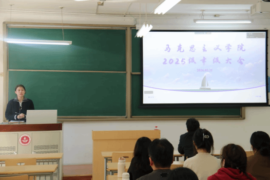 为进一步规范学生党员发展与教育管理工作,夯实学院党建工作基础,2026年3月11日,马克思主义学院在沙河校区教学楼召开2025级学生年级大会,专题解读《发展学生党员工作细则(修订)》。学院党委书记卢刚出席会议,会议由学院辅导员门晶璇主持。