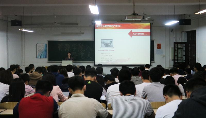 5月5日,思想政治教育学院教师胡伟、石亚玲应邀参加资源学院学生党支部培训活动,培训在民族楼334举行,101名学生入党积极分子和29名党支部书记参加了培训。