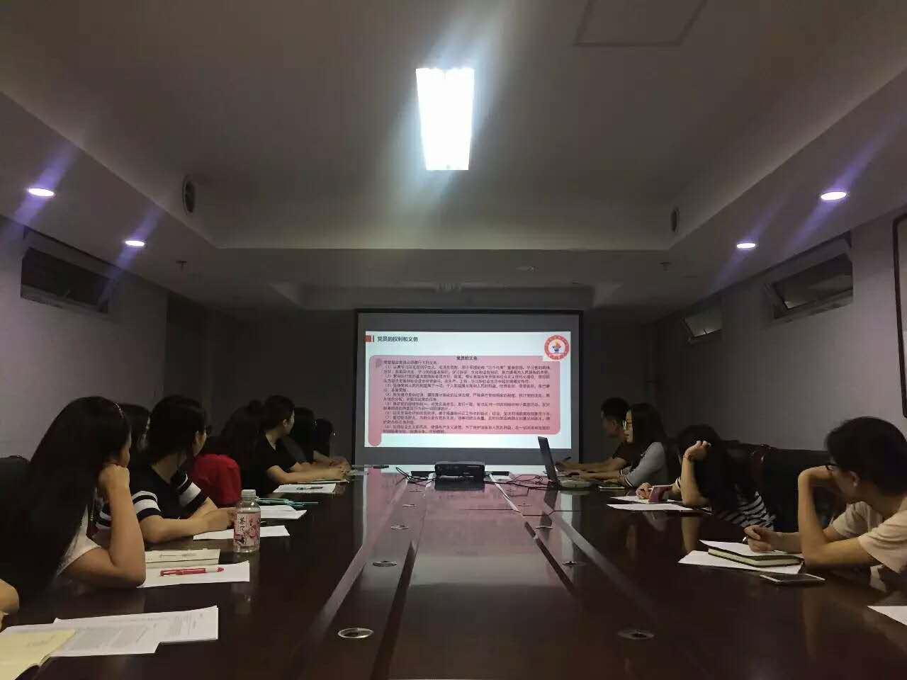 接下来,由思政硕党支部副书记胡叠从党的基本知识和党的最新理论成果两个方面带领大家进行理论学习。党员不仅要时刻铭记党的性质、宗旨和党员的权利义务,更要在一学一做、两学一做、三会一课和四个正确认识中做表率、树榜样。