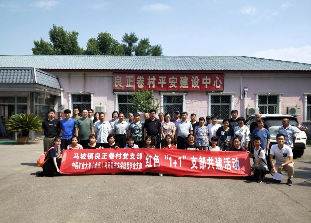 2018年6月30日上午,经我院17届优秀毕业生郁丛笑的联系,中国矿业大学(北京)马克思主义学院哲学党支部与马坡镇良正卷村党支部于良正卷村进行红色“1+1”共建活动。良正卷村党支书茹建良、我院党总支秘书项丽娜、哲学党支部成员、良正卷村党支部成员以及在职回社区党员等近50人参加共建座谈会。