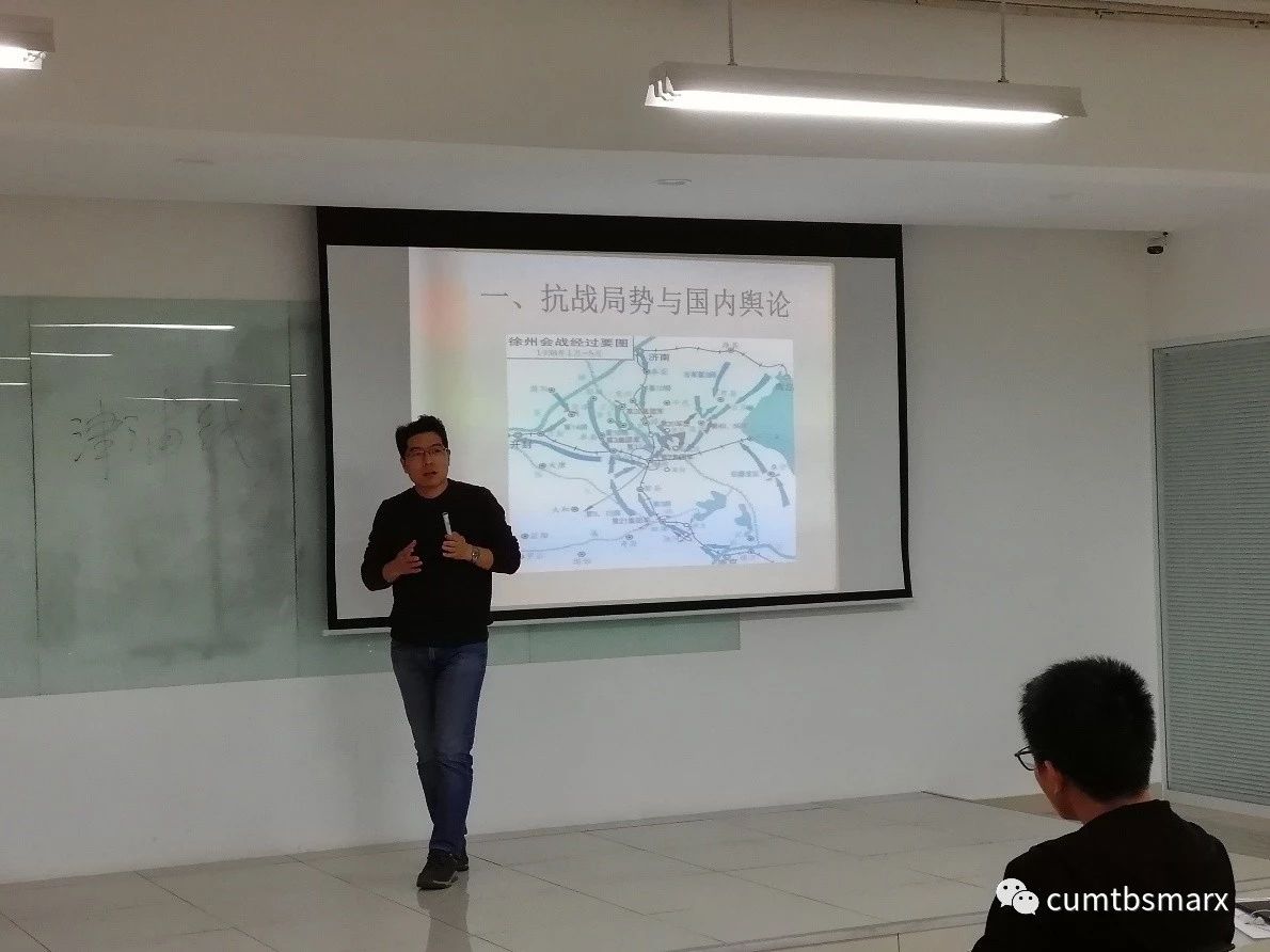 为了纪念毛泽东同志《论持久战》创作八十周年,校马克思主义青年读书会于11月4日下午,在沙河校区图书馆学术报告厅举办《论持久战》讲座活动。马克思主义学院卢刚老师担任主讲人,学校同心支农协会、格致读书会、红十字协会等社团20余人参加了讲座。