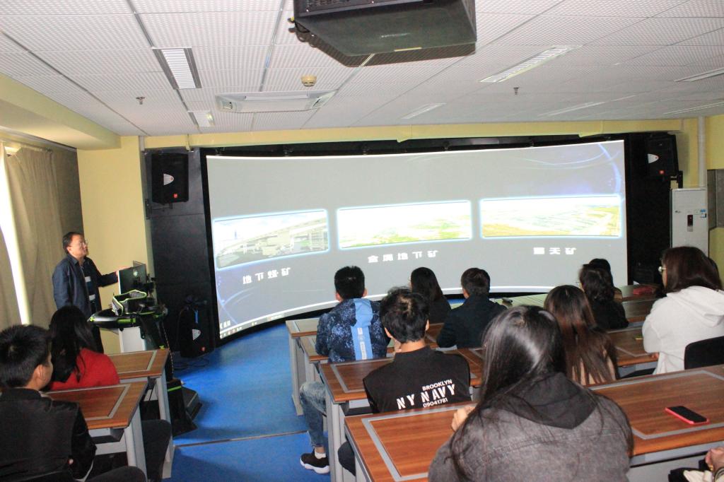 在参观学习过程中,侯教授为在场师生实际操作了三维虚拟仿真硬件平台的实验教学过程,详细介绍了地下煤矿虚拟仿真教学系统、金属矿虚拟仿真教学系统、露天矿虚拟仿真教学系统等多个实验实训平台。大家仿佛置身于矿井企业的工作现场,切实体会了不同类型矿井企业真实的生产情景。侯教授同时还简要介绍了实验室今后的规划建设、管理体制和运行机制,并与在场师生进行了热烈交流,他鼓励我院师生将马克思主义学科与能源行业相结合,并诚挚邀请我院师生开展跨学科交流合作。