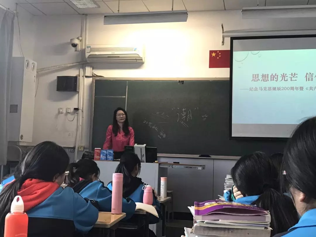 3月22日下午,我院丁小丽老师为矿大附中高二(5)班同学讲授题为“思想的光芒信仰的灯塔——纪念马克思诞辰200周年暨《共产党宣言》发表170年”的“高支附”课程。