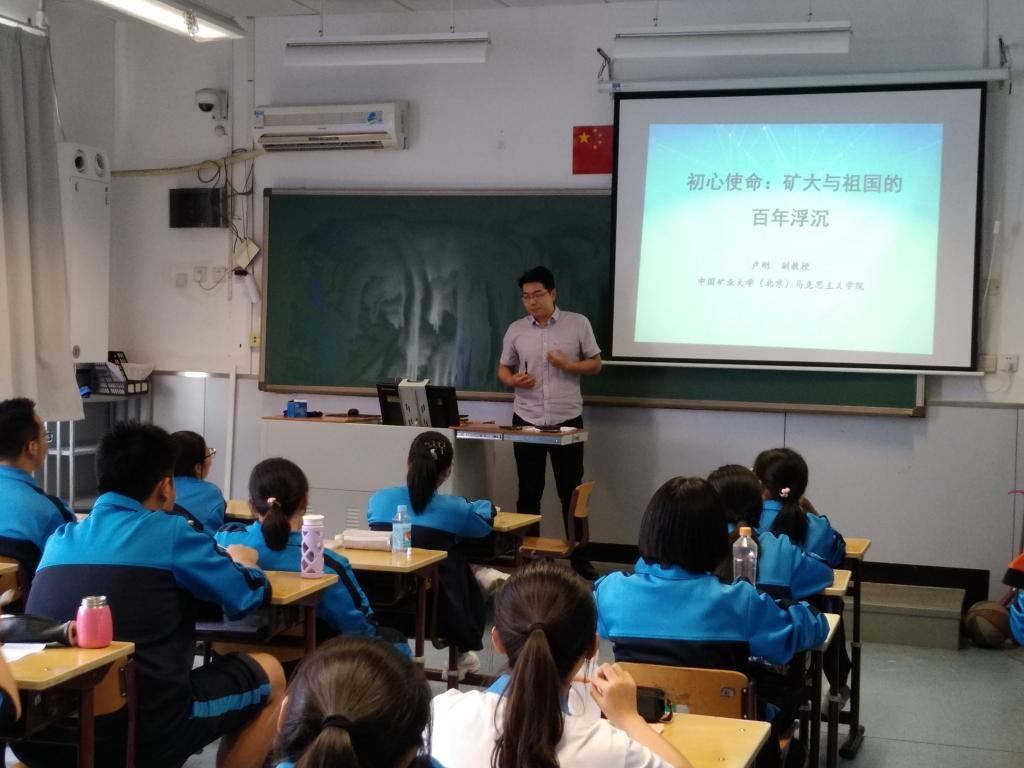 9月19日,中国矿业大学(北京)为一零一中矿大分校开设的“通识教育选修课”继续开课,我院教师卢刚为学生做题为“初心使命:矿大与祖国的百年浮沉”的讲座。